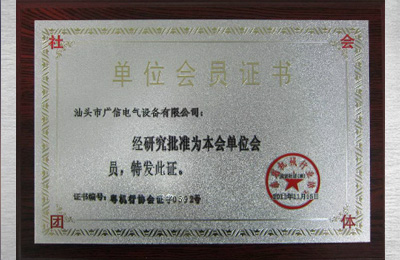 廣東省電氣行業(yè)協(xié)會會員單位證書
