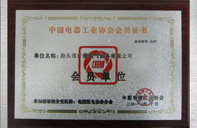 中國電器工業(yè)協(xié)會會員證書