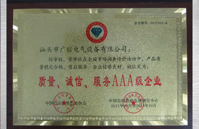 質(zhì)量、誠信、服務(wù)AAA級企業(yè)證書